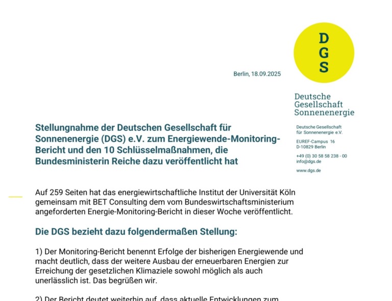 Entdecken Sie die DGS-News, ein informatives Bildungsangebot der Deutschen Gesellschaft für Sonnenenergie e.V., das sich mit Sonnenenergie, dem Übergang zu Erneuerbaren Energien bis 2030 sowie Klima- und Umweltschutz beschäftigt.