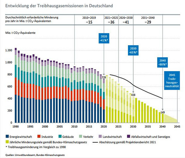 Bereits im Dezember erklärte Habeck, dass es absehbar sei, dass die Klimaziele der Jahre 2022 und 2023 verfehlt werden, wie die Süddeutsche berichtete. Auf der Pressekonferenz betont der erste grüne Bundeswirtschaftsminister, dass die Emissionen in Deutschland seit 2010 jährlich etwa um 15 Millionen Tonnen CO2-Äquivalente sanken. Für die Jahre 2022 bis 2030 müssten es jährlich jedoch im Durchschnitt über 40 Millionen Tonnen CO2-Äquivalente sein. „Das ist der Faktor drei, von dem ich gesprochen habe“, so der Minister. Die Ausrichtung auf das Ziel der Treibhausgasneutralität bis 2045, das die vorherige Bundesregierung beschlossen hat, war bereits Thema bei der Amtsübergabe von Peter Altmaier an ihn. Die Transformation der viertgrößten Volkswirtschaft der Welt hin zur Klimaneutralität ist „die große strukturelle Aufgabe unserer Zeit, dieser Regierung, dieser Legislatur, dieses Jahrzehnts“, so Habeck. Diese Aufgabe bedeute „die ordnungspolitische Leitplanken weiterzuentwickeln und aus der sozialen eine ökologisch soziale Marktwirtschaft zu schaffen“ (bei ca. Minute 33:00).