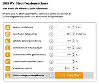 Hier können durch die Eingabe weniger Daten die Stromkosten pro Kilowattstunde ermittelt werden. Und: Auch wenn die Anlage den Strom nicht für 10, sondern für 13 oder auch 15 Cent pro kWh erzeugt, ist das immer noch deutlich günstiger als der Netzbezug und vielleicht viel günstiger, als der Netzbezug in einigen Jahren sein wird. Eine solche Investition wird sich daher an einem guten Standort immer lohnen.