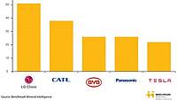 Doch wer ist CATL? Liest man das Gründungsdatum, das Jahr 2011, reibt man sich erstaunt die Augen. Bei uns wäre das bis heute vielleicht ein größeres Unternehmen, das immer noch den Titel „Start-Up“ trägt. Nicht so in China: CATL ist inzwischen ein Großkonzern und beschäftigt heute über 20.000 Mitarbeiter. Nach Gründung wurde zielstrebig die Li-Ionen-Technologie weiterentwickelt, zuerst für den Einsatz in Bussen, dann für PKWs. Im vergangenen Jahr folgte dann ein Börsengang. Nach Analyse der Beratungsgesellschaft Benchmark Mineral Intelligence (Bild 2) lag das Produktionsvolumen von CATL im Jahr 2018 bei knapp 40 GWh. CATL rangiert damit weltweit auf Platz 2 hinter LG Chem (51 GWh) und vor BYD (25 GWh). Doch diese Zahlen sind dynamisch: CATL verdoppelt seit 2016 jährlich seine Produktion, die Mitbewerber, zu denen auch Tesla und Panasonic gehören, expandieren ähnlich. Auch deshalb ist Geschwindigkeit einer der wichtigsten Erfolgsfaktoren im Zellgeschäft.