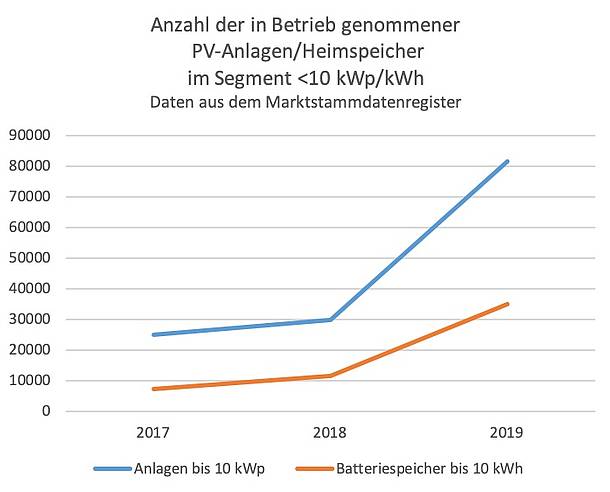 Schaut man in die offiziell für jedermann einsehbaren Daten des Marktstammdatenregisters, kann man relativ mühelos einen Einblick bzw. eine Ahnung davon gewinnen, wie sich die Dynamik der Entwicklung am Heimspeichermarkt gestaltet. Allein die Annahme eines linearen Trends, basierend auf den PV-Installationszahlen bis zum heutigen Tag, lässt ahnen, wie hoch das Wachstum 2020 ausfallen wird, denn die Monate Januar bis April sind nicht der klassische PV-Installationszeitraum. Während das Segment der Speicher zwischen 10 und 30 kWh Kapazität auf niedrigem Niveau linear wächst, kann man im Bereich der durch die EEG-Abgaben zurechtgestutzten Eigenversorger bis 10 kWp Leistung ein exponentielles Wachstum beobachten. Was bereits beim Prosumer-Modell deutlich wurde, gilt hier erst recht: an einer Speicherlösung interessierte Investoren werden sich wohl recht bald vom unbekümmerten Modell der Eigenverbrauchsmaximierung mit Speichereinsatz verabschieden müssen.
