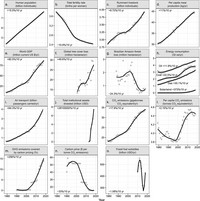 Zu den äußerst beunruhigenden Anzeichen menschlicher Aktivitäten gehören der anhaltende Anstieg der menschlichen und tierischen Populationen, der Pro-Kopf-Fleischproduktion, des weltweiten Bruttoinlandsprodukts, des weltweiten Verlusts an Baumbestand, des Verbrauchs fossiler Brennstoffe, der Zahl der beförderten Fluggäste, der Kohlenstoffdioxid-(CO2)-Emissionen und der Pro-Kopf-CO2-Emissionen seit dem Jahr 2000 (Abbildung 1, Zusatzdatei). Zu den ermutigenden Anzeichen gehören der Rückgang der weltweiten Geburtenrate (Abbildung 1b), der Rückgang des Verlustes an Waldflächen im brasilianischen Amazonasgebiet (Abbildung 1g), der Anstieg der Nutzung von Solar- und Windenergie (Abbildung 1h), der institutionelle Verzicht auf fossile Brennstoffe in Höhe von mehr als 7 Billionen US-Dollar (Abbildung 1j) und der Anteil der Treibhausgasemissionen auf die ein CO2-Preis erhoben wird (Abbildung 1m). Allerdings hat sich der Rückgang der menschlichen Fruchtbarkeitsrate in den letzten 20 Jahren erheblich verlangsamt (Abbildung 1b), und der Waldverlust im brasilianischen Amazonasgebiet wieder zugenommen (Abbildung 1g). Der Verbrauch von Solar- und Windenergie nahm in jedem Jahrzehnt um 373 % zu, war aber 2018 immer noch 28 Mal kleiner als der Verbrauch fossiler Brennstoffe (Summe der Gas-, Kohle-, und Ölverbräuche; Abbildung 1h). Im Jahr 2018 wurden etwa 14 % der globalen Treibhausgasemissionen bepreist (Abbildung 1m), aber der globale emissionsgewichtete Durchschnittspreis pro Tonne Kohlenstoffdioxid betrug nur etwa 15,25 US-Dollar (Abbildung 1n). Es ist ein viel höherer Preis für CO2 erforderlich (IPCC 2018, Abschnitt 2.5.2.1). Die jährlichen Subventionen für fossile Brennstoffe an Energieunternehmen betrugen im Jahr 2018, aufgrund eines jüngsten Anstiegs, mehr als 400 Milliarden US-Dollar (Abbildung 1o).