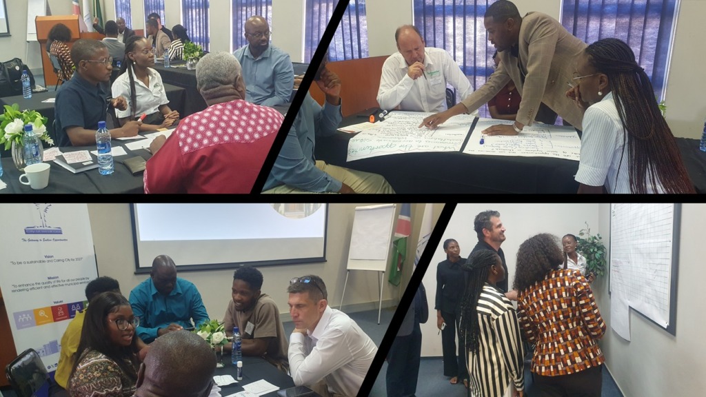 Ein zentraler Bestandteil des Coachings waren zwei World-Café-Workshops, einer mit Akteuren/Expert:innen der Solarenergie aus Windhoek und einer mit den Solar Champions. Ein World-Café besteht aus verschiedenen Thementischen, an denen in kleinen Gruppen unterschiedliche Themen diskutiert werden. Jeder kann an verschiedenen Tischen mitdiskutieren.