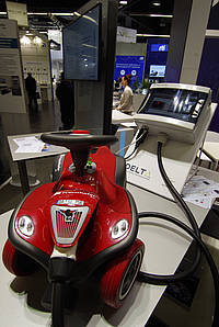 Aber nicht nur zum Thema Stromversorgung kleiner elektronischer Systeme war viel zu sehen: Auf der Embedded World wurden auch jede Menge innovative Lösungen für die Elektromobilität vorgestellt. So lief über dem Stand der Vector Informatik GmbH, einem „seit 30 Jahren kompetenten Partner für die Entwicklung von Elektronik im Automobil“ aus Stuttgart mit über 2.000 Mitarbeitern, ein riesiges Leuchtband zu „E-Mobility“. Gerade in der Zuliefer-Industrie scheint einiges in Bewegung.