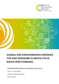 Der Herausgeber der Studie, die Plattform Erneuerbare Energien (PEE) betont im Vorwort: „Für den starken Ausbau Erneuerbarer Energien, der im Fokus der Szenarien steht, braucht es stabile und stimulierende politische Rahmenbedingungen. Das Land spielt zwar mit der Solaroffensive, dem Ausbau ländlicher Wärmenetze und dem Erneuerbaren Wärmegesetz bundesweit eine Vorreiterrolle, aber der Ausbau der Erneuerbaren Energien ist auch im Südwesten deutlich hinter den notwendigen Zuwachsraten zurückgeblieben“. Die PEE sieht auch die lokale Wertschöpfung und neue Arbeitsplätze in der eE-Branche als Chance für einen wirtschaftlichen Wiederaufschwung in den nächsten Monaten und Jahren.