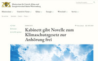 Trotz des Drucks kam seit letztem Jahr die Fortschreibung des Klimaschutzgesetzes nicht voran, im Februar kritisierte Umweltminister Franz Untersteller seinen Koalitionspartner dafür offen und forderte ein rasches Vorankommen „Das kann so nicht weitergehen“, so der Minister damals. Heute befindet sich das Gesetz mit der aktuellen Anhörung auf der Zielgeraden, mit einer Verabschiedung ist nach der Sommerpause zu rechnen.