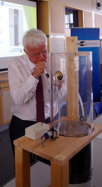 Den Energieausgleich soll dabei ein so genannter Stülpmembranspeicher (*) bewerkstelligen. Der dient außerdem dazu, Überschussstrom zu vermarkten, um so die Energiebezugskosten für die Verbraucher zu vermindern. Doch zunächst stellten sich die Studierenden Fragen um die zu gewinnende Ökoenergie.