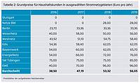 Der letzte Punkt wird in der Tabelle (Bild 2) deutlich: Diese dargestellte fixe Grundgebühr für die Netznutzung legt der Netzbetreiber mehr oder weniger willkürlich fest, je nach Stromverbrauch kann das dann pro kWh einen erheblichen Preisunterschied bedeuten, je nachdem in welchem Netzgebiet man sich befindet.