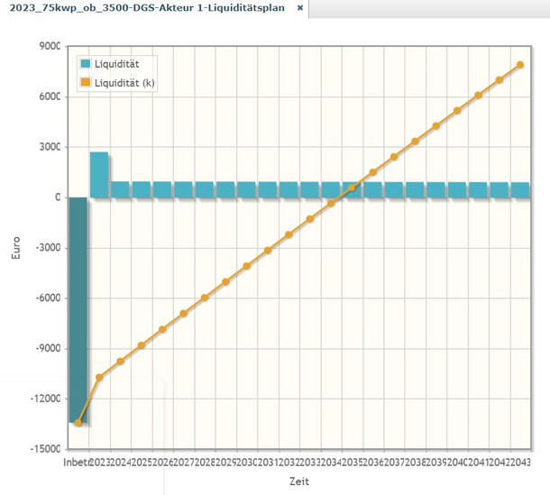 Für die Volleinspeisung mit den neuen, deutlich erhöhten Vergütungssätzen ergibt sich eine vernünftige Wirtschaftlichkeit, nach 12 Jahren ist der Break-Even erreicht.
