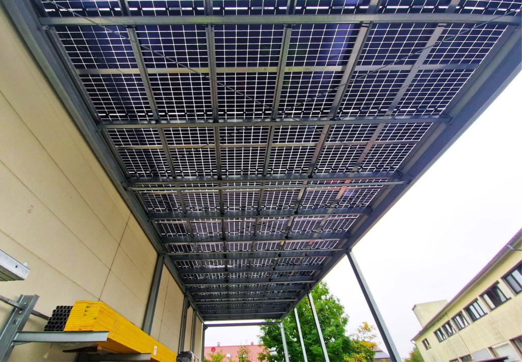 Das vielleicht bekannteste Projekt aus dem PV-Bereich: Eine flächige Parkhausüberdachung als durchgängige PV-Anlage mit 4.200 Solarmodulen und 1,3 MWp Leistung für den Autozulieferer Dräxlmaier am Standort Landshut. Dort wurden auch noch 150 Ladepunkte für Elektrofahrzeuge auf der Parkfläche ergänzt.