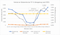 Die 70%-Abregelung nach EEG führt zu Verlusten der Einspeisung im Jahr von 4,5% der jährlichen Solarernte wie die Messung und Auswertung einer PV-Anlage ergab. Eine Abschaffung dieser Regelung würde somit deutlich mehr Solarstrom im Netz bedeuten. An einzelnen Tagen können das sogar bis zu 17 % der möglichen Tages-Ernte sein.
