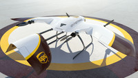 Wingcopter ist der zweite große Anbieter mit einem technisch völlig anderen Konzept. Während der Volocopter mit kreisförmig angeordneten Propellern von weitem aussieht wie ein Hubschrauber, kommt der Wingcopter eher wie ein Kleinflugzeug mit Flügeln daher. Das erklärt auch das „Wing“ im Namen. Das Fluggerät kann dank schwenkbarer Propeller senkrecht starten und landen, die Flügel werden genutzt, um auch lange Distanzen energiesparend zurücklegen zu können, eine kleine Animation demonstriert das Abheben.