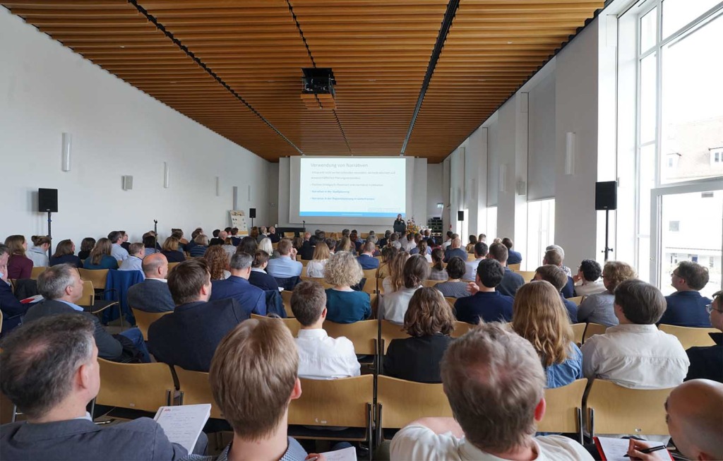 „Dennoch muss die Regionalplanung (RP) die Energiewende schultern. Das sage ich als ganz bewusstes Statement. Die RP meistert gerade die größte Herausforderung in ihrer Geschichte“, so Prof. Priebs vor den etwa 160 Teilnehmenden. Doch er sieht die Aufgabe „nicht nur als Herausforderung, sondern als große Chance für die RP: Sie wird inzwischen von der Öffentlichkeit als Problemlöser wahrgenommen.“ Zumal nicht nur die Windflächen, sondern auch viele andere Themenfelder zu bearbeiten sind. Insgesamt geht es für Priebs „darum, die Resilienz und Redundanz bei der Versorgungsinfrastruktur nachhaltig zu sichern. Und wer sollte das sonst machen – wenn nicht die RP?“ stellte er selbstbewusst klar.